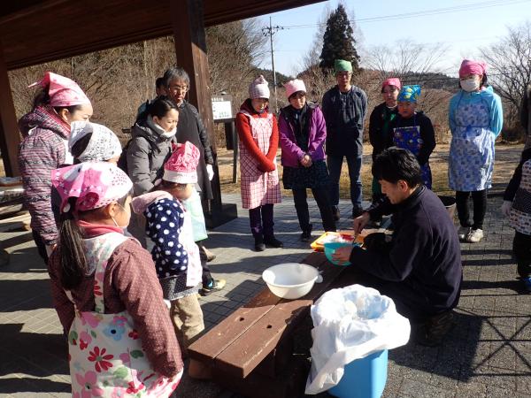 | 持参品等 | 作業が出来て汚れても良い服装・靴、防寒具、エプロン、三角巾、軍手,お好みのトッピング(ジャム等)飲物等 |