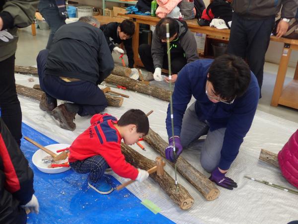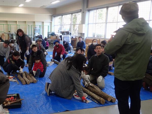 | 趣旨 | 原木にシイタケの植菌を行い、自宅でシイタケの栽培をします。シイタケのおすすめレシピと試食も行い、自然の素晴しさや大切さを実感していただくと共に、自然環境や森林・林業を守り育てる事の大切さへの理解を深めていただきます。 |