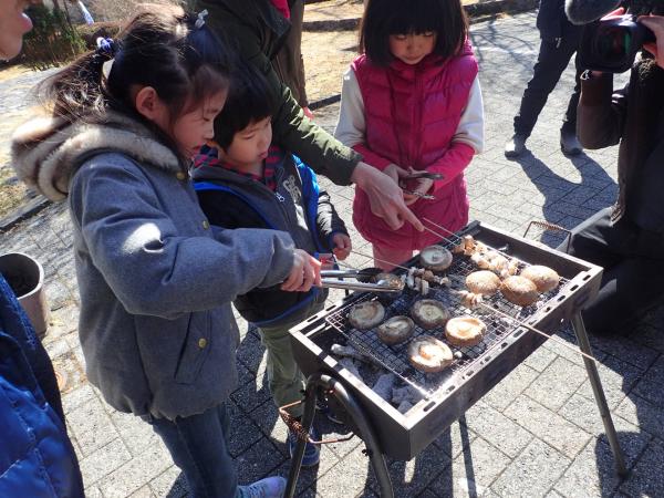 | 日程 | 午前10時00分 受付(森林展示館) 午前10時15分 オリエンテーション(森林展示館) 午前10時30分 駒打ち体験(県民の森地内) 午前11時00分 シイタケ調理・試食会(森林展示館) 午後01時00分 閉会・アンケート(森林展示館) |