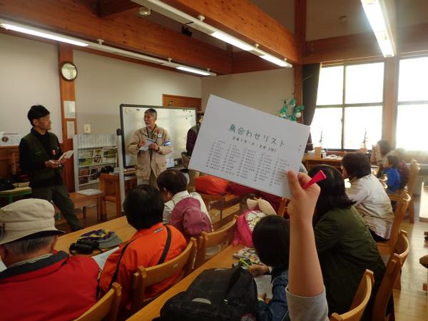 | 日程 | 午前09時00分 受付(森林展示館) 午前09時15分 オリエンテーション(森林展示館) 午前09時30分 観察のコツ等の説明(森林展示館) 午前10時00分 野鳥観察(県民の森地内) 午前11時45分 鳥合わせ(森林展示館) 午前12時00分 閉会・アンケート(森林展示館) |