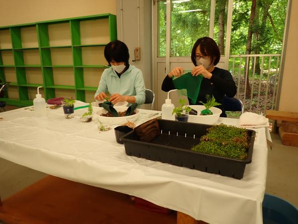 | 内容 | 県民の森のコケや植物を使い、苔玉づくりを行います。 |