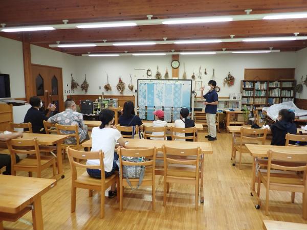 | 日程 | 午前09時30分 受付(森林展示館テラス) 午前09時45分 オリエンテーション(森林展示館学習室) 午前10時00分 藍染めについて講義(森林展示館学習室) 午前10時30分 生葉染め体験(森林展示館テラス) 午後12時00分 閉会・アンケート(森林展示館テラス) |