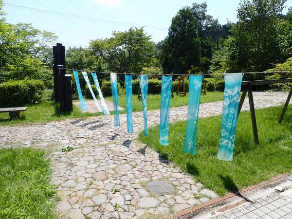 県民の森で種子から育てたタデアイの葉を使い、生葉染めを行います。オリジナルの模様をつけて鮮やかな空色に染め上げます。 1,000 |