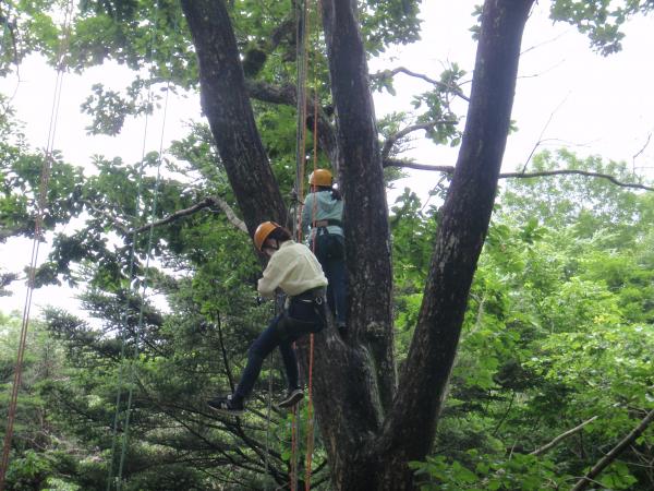 ツリークライミング専用のロープや安全帯、安全保護具を利用して木に登り自然との一体感を味わっていただきました。